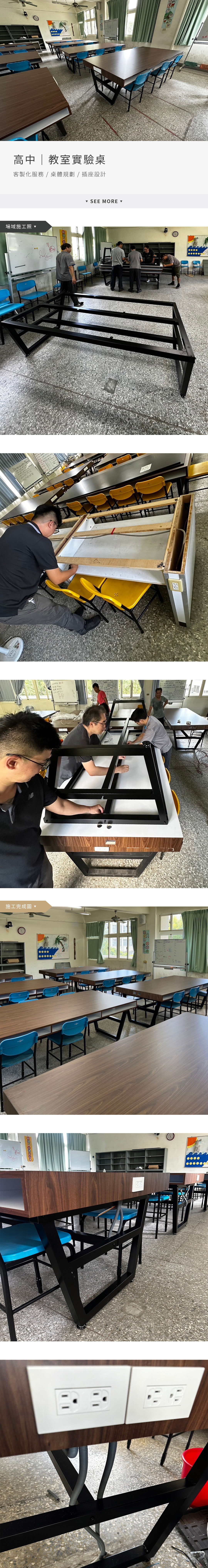 本案依據教室條件重新規劃實驗桌配置,整合穩定結構與操作檯面,使動線更順暢、使用更安全,提升教室整齊度與教學效率。